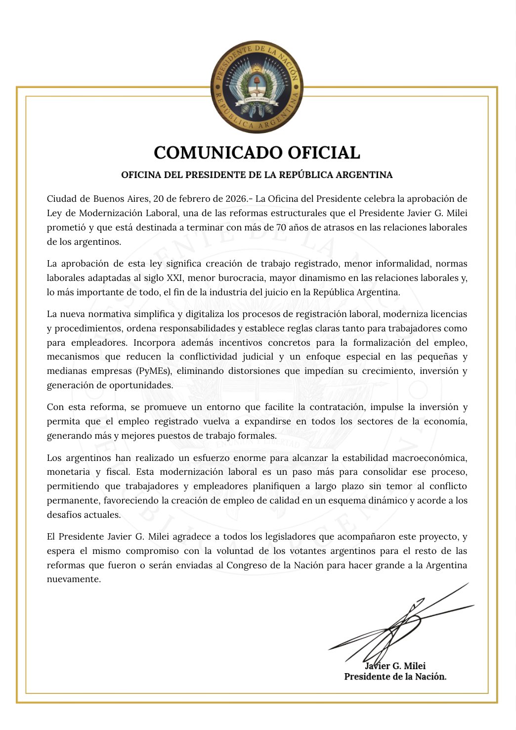 Los bloques que acompañaron el proyecto afirmaron que el objetivo es actualizar las normas, incentivar la registración de trabajadores y disminuir los conflictos judiciales. Desde la oposición, en tanto, plantearon cuestionamientos por el impacto sobre las condiciones laborales y pidieron abrir instancias de mayor acuerdo político.