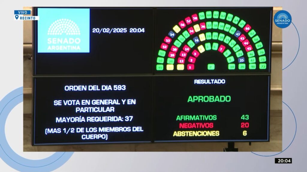 La iniciativa contó con el apoyo del oficialismo y algunos legisladores dialoguistas, mientras que el kirchnerismo se dividió, replicando la fractura que ya se había evidenciado en la Cámara de Diputados.