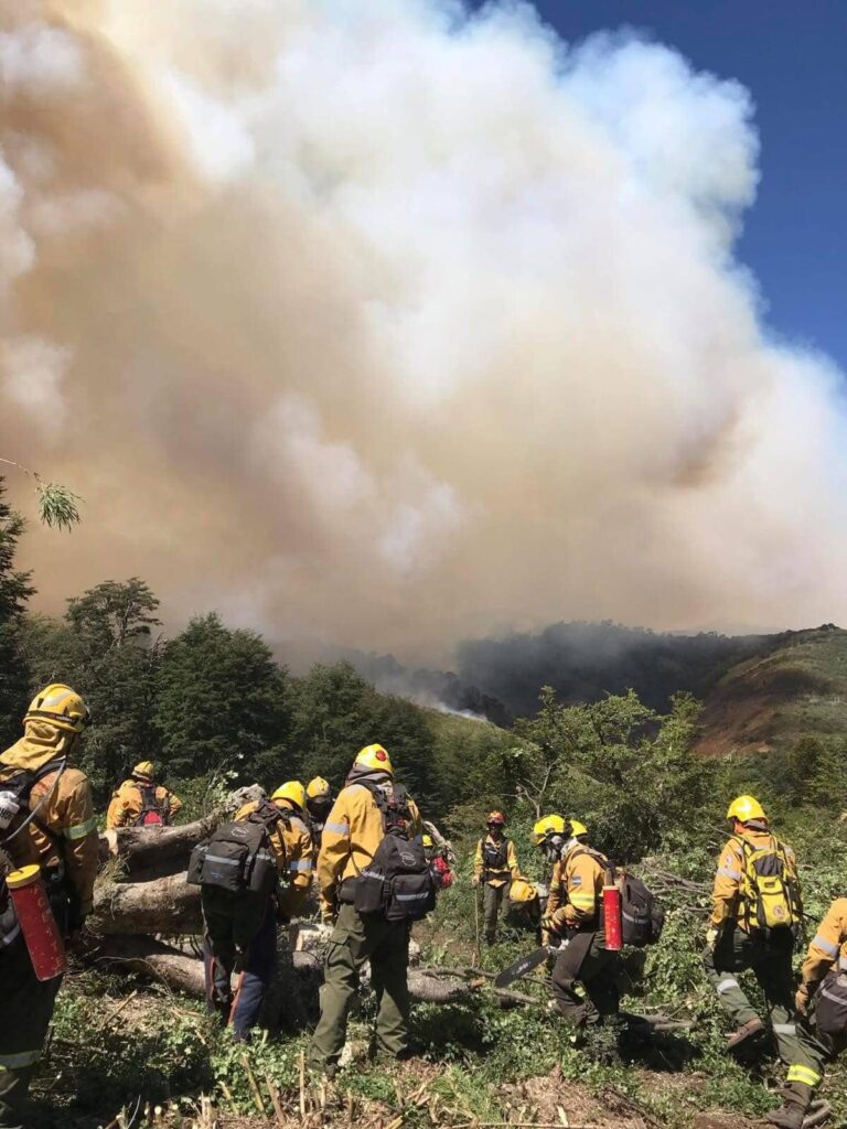 Debido al comportamiento del incendio y por la seguridad del personal, cerca de 19:00 se decidió reubicar el campamento del personal.