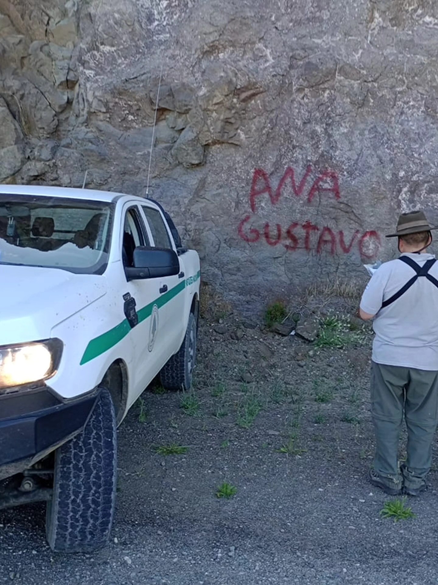 Autoridades del Parque Nacional Nahuel Huapi iniciaron las constataciones legales correspondientes luego de detectarse un graffiti pintado sobre una piedra en un sector del río Limay, una acción prohibida dentro del área protegida.