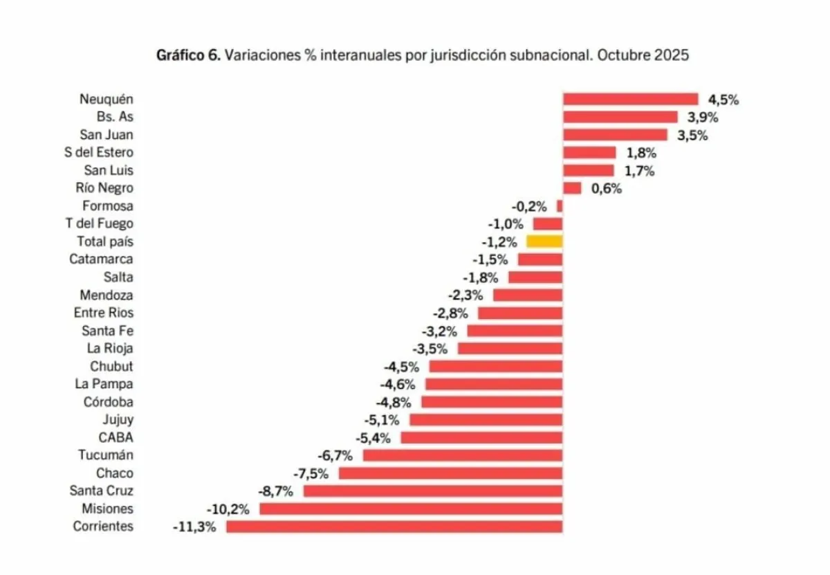 El crecimiento provincial superó a Buenos Aires, San Juan, Santiago del Estero, San Luis y Río Negro, y se explica por la actividad vinculada a Vaca Muerta, cuyo desarrollo sigue impactando en la demanda energética y el movimiento logístico.