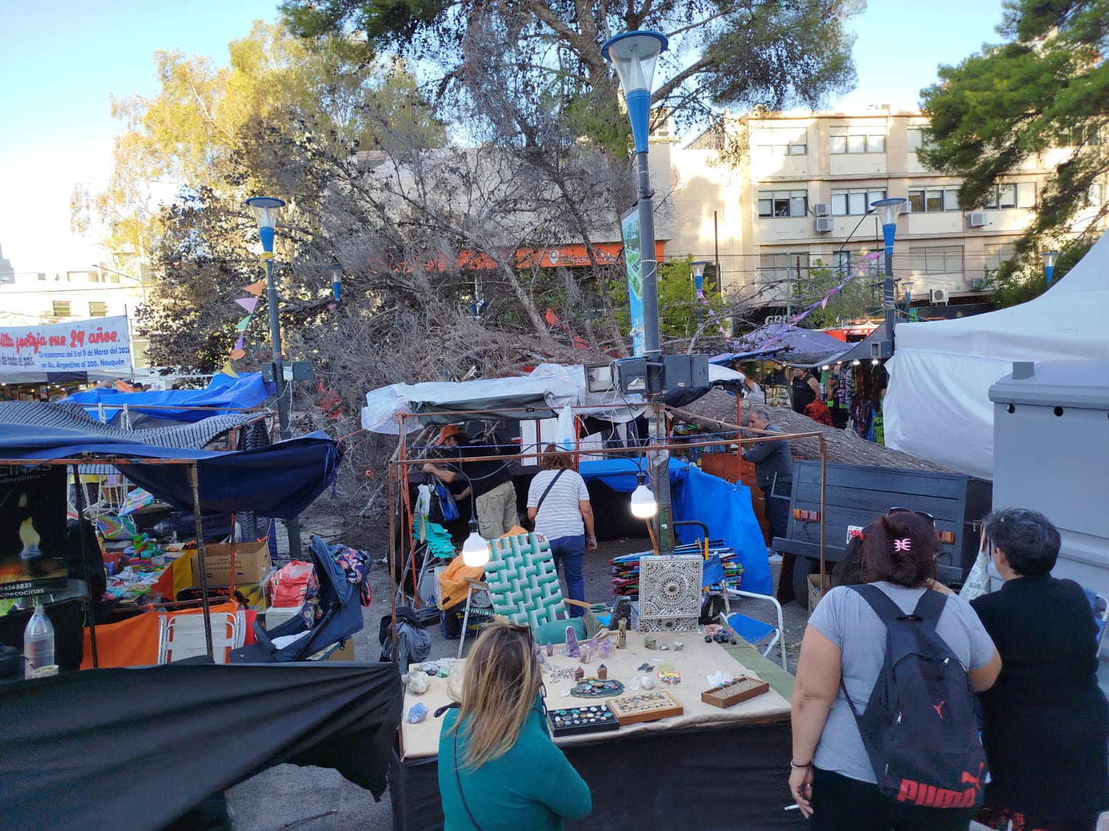 En horas de la tarde de este viernes, las intensas ráfagas de viento que azotaron la ciudad de Neuquén provocaron la caída de un árbol en pleno centro de la ciudad, específicamente en la feria artesanal La Pergolita, ubicada sobre la Avenida Argentina.